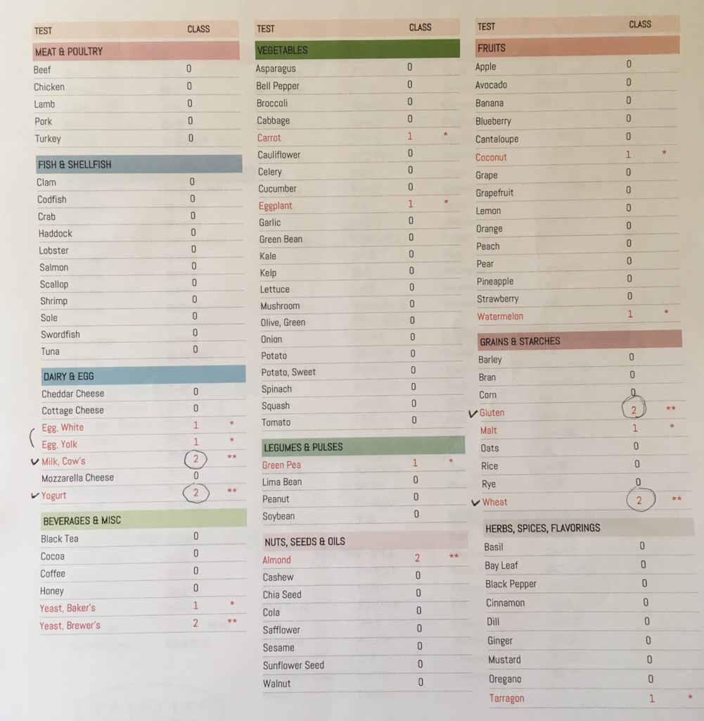 私の場合、3はなかったのですが、高めだったのが、ヨーグルトや牛乳、あとはグルテン(小麦製品)などですね。意外だったのはアーモンドです。たまに食べていたので、これからは気をつけないとですね。
